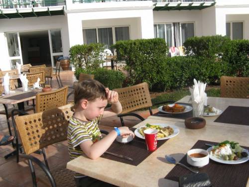2 бара. В лобби баре бильярд, два стола бесплатно. В Pool баре теннисные столы. Напитки соки порошковые, кола-фанта-спрайт из бутылок, спиртные напитки на любой вкус, пиво из кег, хорошее легкое. Красное вино вкусное в лобби баре. С 10-00 до 12-00 легкие закуски, бутерброды всякие, а с 12-00 до 16-00 на улице жарили – хот-доги, гамбургеры, пиццу, а так же можно было взять чипсы, овощи. Час мороженного с 15-00 до 16-00, этого было достаточно, чтобы дети наелись его вдоволь. В основном ресторане завтрак, обед и ужин. Питание хорошее, на любой вкус. Есть детское меню, есть диетическое. Ассортимент выбора нормальный – мясо разных видов, рыба, гарниры, салаты. Каждый вечер барбекю. Итальянские блюда – лазанья, паста. Большой плюс – всегда есть чем накормить маленького ребенка. Есть детские стульчики. Питание представлено в отеле с 7-00 до 03-00, всегда что-то можно было перекусить.