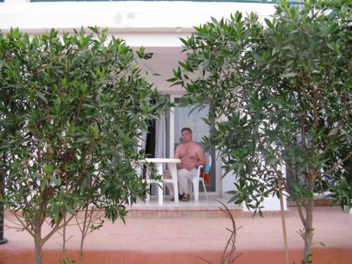 Номер большой, для трех спальных мест было просторно. В номере при входе шкаф-купе, там сейф электронный бесплатно, маленький холодильник-бар пустой, мы в нем фрукты хранили и воду )). Санузел приличный, чистый, убирали номер и полотенца меняли каждый день. Шампуни, мыло, все доливалось по необходимости. Так же в номере были тумбы, телевизор, кондиционер, стулья. Балкона нет, терраса со столиком и два стула. Вид из номера на кусты и пустыню.