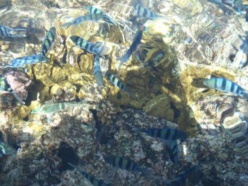 Пляжей у отеля два – коралловый и песчаный. На оба ходят бесплатные автобусы примерно раз в час, есть расписание. Ехать минут 15-20. Вечером также бесплатный автобус до Наама Бэй, местного тусовочного центра. Ниже 30 температура опускалась только вечером, поэтому для купания условия идеальные, море очень теплое, в бассейне вода холоднее. Лежаков на пляже нам не хватило раз или два. Жаркое весь день солнце палит нещадно. Мы заранее закупились кремами от загара и обильно ими мазались, но и они едва справлялись, периодически появлялись красные пятна, правда, обошлось без ожогов. Страшные картины красных облезающих отдыхающих здесь не редки. И почему море называется красное не понятно, на самом деле море потрясающе голубое-бирюзовое-синее, сравнить просто не с чем, его нужно видеть. Чистота и прозрачность вызывают только восторг. А чтобы увидеть подводные пейзажи как на каком-нибудь national geographic достаточно купить маску и трубку на местном рынке за 15-20 баксов. Рыб огромное множество и разнообразие их красок ласкает глаз замыленный серыми пейзажами индустриальной родины. Красное море в Египте стоит отдельного путешествия. И не раз. К сожалению, мы были вынуждены отказаться от экскурсии в национальный парк Рас-Мохаммед, т.к. заказанный на ebay подводный бокс для фотоаппарата не успел приехать до нашего отъезда.
