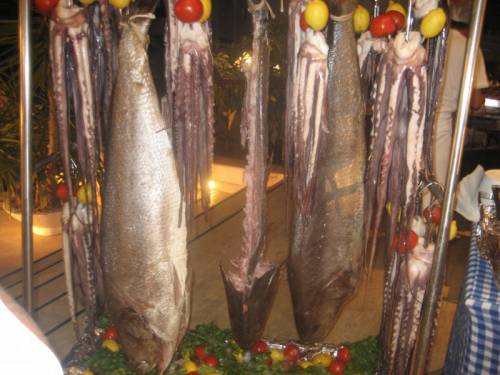 Кормили разнообразно, на любой вкус, можно что угодно попробовать: и мясо они тут же разделывают - приготавливают, и рыбу огромных размеров, и свои национальные блюда. К тому же все стерильно, сами повара и, кто как-либо прикасается к еде ОБЯЗАТЕЛЬНО в шапочках на голове и перчатках. Официанты работают очень слаженно, нет такого, что ты поел и сидишь ещё минут 20 ждешь, пока у тебя со стола уберут грязную посуду, все оперативно!
