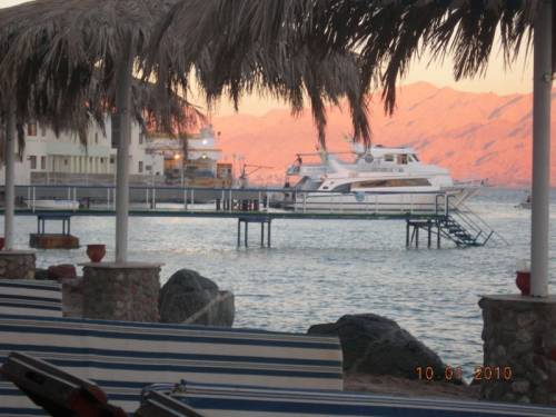 С этого момента начинается наш сказочный отдых. В отеле все время, практически круглые сутки находятся гиды Пегаса. Ехали до Табы 2,5 часа, я забыла о бессонной ночи в самолете и с удовольствием рассматривала горы, согласитесь не типичный для Египта пейзаж. Отель просто великолепный! Мы выбрали комнату на 5-м этаже с видом на море, доплатили всего 50$-обязательно торгуйтесь :)), персонал всегда готов пойти вам навстречу :)) Большая комната с балконом, вид был чудесный особенно рано утром и вечером, когда загорались огни с противоположного берега - граница с Израилем. Привели себя в порядок и уставшие, но довольные пошли на ужин. Питание достаточно разнообразное, все вкусное и свежее. Отдельно хочу отметить огромное кол-во выпечки и десертов, такая вкуснотища!!! Приходилось собирать волю в кулак, чтобы проявить благоразумие в выборе блюд и не превращать праздник живота в банальную обжираловку )) Немного о персонале: заранее где-то прочитала, что нужно всем улыбаться и говорить спасибо. Так и сделала, выучила по-арабски спасибо )), я не заметила различия в сервисе иностранцев, персонал вежливый и внимательный. Главное - это улыбка, ребята, улыбайтесь и все будут улыбаться Вам в ответ!Море в Египте особенное! Погода на протяжении всего отдыха в начале января +30 +32 градуса. Ветра нет, море теплое, потому что от ветра Табу защищают горы. По количеству солнечных теплых дней Таба занимает первое место в Египте. Территория небольшая, но очень зеленая, есть, где погулять, очень живописно. На территории несколько ресторанов, можно пообедать прямо на пляже. Вход в море удобный - и песчаный и с понтона (например, для любителей кораллов). В других отзывах читала, что не хватает на всех лежаков, но мы с этим не сталкивались.Про анимацию. Кому-то покажется скучно, и грустно, без дискотек, и шумных молодежных тусовок, ну что ж, дискотек нет, но в лобби баре проводились какие-то тематические вечера. Все тихо и респектабельно. Отдыхают в основном семейные, и влюбленные парочки, так что если нужно движение и тусовки - то не подойдет. Очень порадовали, аниматоры - весело, непринужденно, - приглашают всех участвовать в своих мероприятиях чуть ли не индивидуально, при этом силой, конечно, никого не тянут. В течение дня на пляже - волейбол. Лично я довольна, с 11 часов до 12 -йога. Пальмы, песок, море - абсолютный релакс. В 12.15 я бежала на аквааэробику в бассейн (в бассейне морская вода) перед отелем. Глядя на заводного парня, все плескались и веселились, как дети. В три часа - танец живота. Да, для тех, кто с маленькими детьми есть бассейн с подогревом.Я очень довольна! Отдых удался! Ребята, не надо ехать и вместо того, что бы отдыхать, ходить и выискивать недостатки, это можно найти везде, даже в самом безупречном!P.S Таба- райский уголок на Земле! А если вы хотите отдохнуть и посмотреть еще две страны, то непременно только ТАБА!