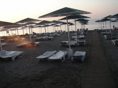 Пляж на половину галька и песок, чистый. Вода тоже чистая, иногда были приливы мусора, но быстро всё уносило. На пляже мини-бар, пекли бесплатно лепёшки (очень вкусные) с творогом, шпинатом и мясом.