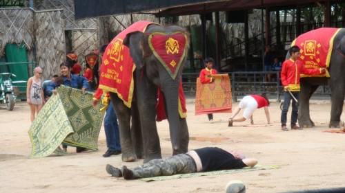 Первая экскурсия которую посетили - парк Нонг Нуч. Очень большой, и такой сказочно красивый. Организовала его госпожа Нонг Нуч, ей 85 лет и свое дело передала сыну, но у него другие интересы и поэтому посреди великолепного парка организована открытая автостоянка большой коллекции машин. В эту экскурсию входит театрализованное представление тайских танцев, тайского бокса, театрализованного боя на слонах, а затем представление слонов, после которого желающим делают массаж слоны. Стоимость этой экскурсии 550 бат. У гидов Пегаса все дороже. Кстати, курс доллара по отношению к бату: 1 доллар=30 бат. Забегая вперед хочу отметить, что все экскурсии брали на улице «Sun Sand Beach Co., ltd» у Рустама, были довольны, тем более что как постоянным клиентам он еще делал скидки.