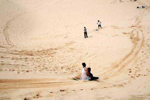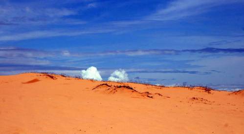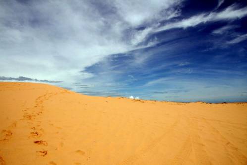 Если вы собрались во Вьетнам на отдых, включите в свой список обязательных мест к посещению — красные и белые дюны в Муй Не. Пейзажи не оставят равнодушными даже искушенных путешественников по Азии. Экскурсия возможна только если вы решите отдыхать в Муй Не или Фантьете, так как от Ня Чанга придется ехать около 4 часов. Красные дюны находятся в 5 км от рыбацкой деревни Муй Не, белые в 40 км. Сама дорога к дюнам очень непримечательна, даже начинаешь слегка грустить в автобусе зачем ты согласился.Но вот минут 30 поездки в автобусе и еще 5 минут по тропинке — и перед вами окрывается живописный вид, несравнимый по красоте с другими пейзажами, благодаря своей уникальности. Под порывами ветра дюны могут принимать самые причудливые формы, пейзаж все время меняется. Подъехав к белым дюнам вы увидите озеро Лотосов, которое расположено прямо у подножия песчаных барханов. Называется оно так ,потому что у его берегов растет множество лотосов, правда, цветут они во второй половине года. Зато белые пески вокруг озера прекрасны в любое время года, и каждый получит свою долю ярких впечатлений от прогулок по дюнам ,которые кажутся безграничными с некоторых вершин барханов. Прекрасный пейзаж ,который вам запомнится на всю жизнь! Местные детки тут же вам предложат прокатиться на самодельных санках с дюн. Стоит это удовольствие где то около $5, нельзя сказать что это будут сильные впечатления но многие готовы их добавить в свою копилку вещей, которые они попробовали в жизни). На обратном пути вам могут предложить покататься на страусах, предложение для очень смелых.