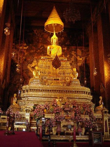 Храмовый комплекс Ват-По (Храм Лежащего Будды) - знаменит находящейся в нем гигантской статуей лежащего Будды (длина 46 м, высота 15 м), ступни которой украшены перламутровой инкрустацией, символизирующие сцены из жизни Будды. Также в храме можно купить плошку с монетами за 20 Бат, загадав желание, эти монеты нужно положить в 108 чаш, расположенных по периметру храма. Если у Вас совпало число монет, Ваше желание обязательно сбудется.