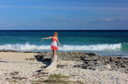 Море… Карибское море – одно из самых красивых морей. Бирюзовая вода, и белые барашки волн. Вход очень плавный, с отмелями. Вода теплая-теплая. Погода в Мексике отнюдь не жаркая в ноябре, и почти всегда дует ветер. Т.е. на солнце жарко, но в тени и с учетом ветра, изнуряющей жары нет. А по вечерам так и вовсе 17 градусов было.