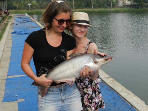 Мы отправились в Фишинг-парк, рыбалка на сома, взяли спиннинг, прикормку и стали ждать, когда рыбка попадется на крючок. Ждать долго не пришлось и вот мы уже делаем шикарные снимки с нашим первым сомиком, а после этого опять отпускаем его на волю. Вобщем поймали 14 штук!!! День пролетел незаметно…