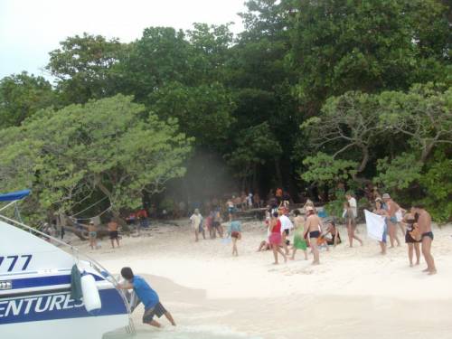 В 6 часов утра за нами заехали. Один час на автобусе и полтора часа на скоростном катере. И наши ноги ступили на песчаный пляж рая. Не всякий выдержит (Пегас заботливо предложил каждому на пристани легкий завтрак и таблетки от качки). Но оно стоит того. Песок словно белоснежная мука, который невозможно удержать даже в руках. Первые минуты, проведенные в этом месте, даже дух захватывает от красоты и обилия красок: яркая зелень, неописуемой красоты цветы, удивительно прозрачная бирюзовая вода, белоснежный песок и огромные серые камни.