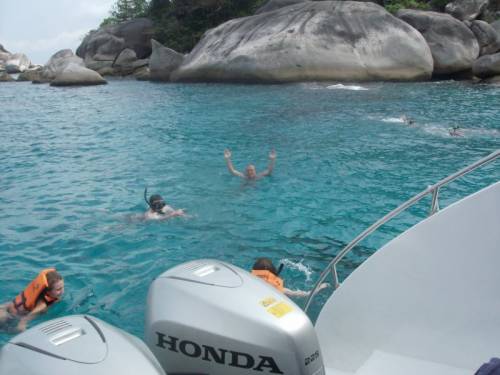Дорога до пирса на катере была с сюрпризом – вдруг потемнело небо и начался очень сильный ливень, но нам все было ни почем. Жалко лишь было прощаться с Симиланами.