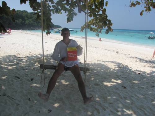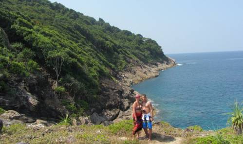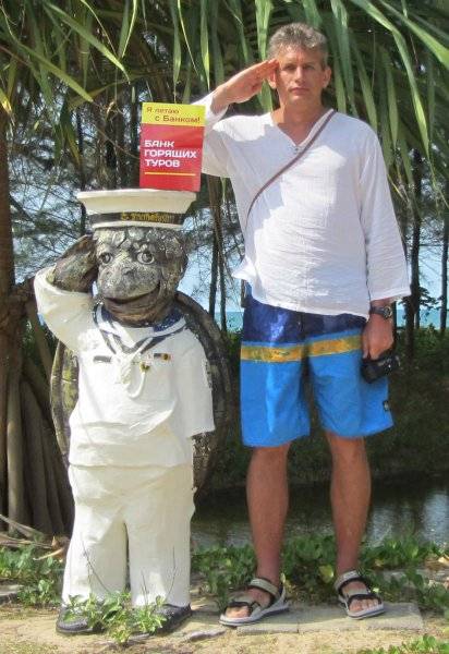 Из всего многообразия выбрали две, одну – материковую, в национальный парк Као Лак, другую-островную, на остров Тачай. Као Лак находится в 80 км севернее Пхукета. Посетили пещеру-храм обезьян, где они десятками спускаются с горы, поедают, а, временами, насильно выхватывают угощения у туристов, зоопарк, где нас встретил шикарный павлин с распустившимся хвостом, черепаховую ферму. Затем катание на слонах, мини-шоу со слоненком, играющим на губной гармошке и целующим вас своим хоботом. Сплав по речке на бамбуковых плотах. Насыщеная экскурсия с множеством событий. Следующее приключение- на остров Тачай. Встаем рано утром, отправляемся сначала на микрике, проезжаем опять мост Пак Пра, отделяющий Пхукет от материка, затем на скоростном катере добираемся до Тачая. Это недавно открытый маршрут на остров, названный в честь рыбака по имени Тачай, выброшенного на него стихией. Красота здесь обалденная. Длинный пляж с картинки “Баунти”, песок белейший, мельчайшей мучной консистенции, море тишайшее, лазурное, чистейшее. Поднялись на смотровую площадку, а с обратной стороны- скалы, бурная вода, пейзаж, напоминающий наш Байкал. Контраст разительный. Внутри острова наблюдали здоровых крабов, один из них называется чикен-краб, который кудахтает как курица (правда при нас молчал). Вверху, на деревьях, висят летучие мыши. Посещающих остров немного, особенно относительно Пхи-Пхи и Симилан. Пока Тачай не заездили и не загадили, всем рекомендую туда сгонять, не пожалеете. Рассказывать можно много про Тай, наверное, это похоже на рай, сравнить не могу, там я еще не был. Тайцы называют это “Бан-сабай” – состояние беззаботности, близкое к нирване. Здесь я с ними согласен. Отдельная благодарность от нас Банку горящих туров и Бединой Екатерине за профессионализм и чуткость. Все было подготовлено идеально. Ждите нас за новыми путевками!