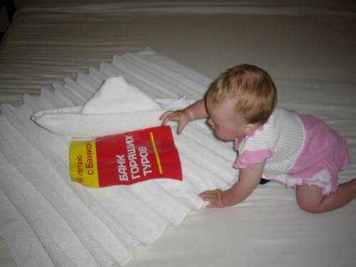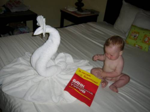 Привет! Я -Эмма и мне всего 7 месяцев, но это не помешало мне отдохнуть в Египте, Шарм эль Шейхе. Летали с БАНКом ГОРЯЩИХ ТУРОВ, мама всегда с ними летает! Погода в марте стояла чудесная, мне очень понравилось море: теплое и соленое и разноцветные рыбки, которые всегда приплывали к нам. Я таких рыбок на коралловом рифе только по телевизору видела, с моими рыбками в аквариуме не сравнить! В отеле PARK INN мне очень понравились огурцы, дыня, яблоки, всего в изобилии, у мамы с папой глаза разбегались. Мама переживала, что я буду бояться арабов, но нет! Они всегда мне улыбались, играли со мной, а как здорово они поздравляли деток с днем рождения: песни, бубен, всей толпой на руках качали и тортик вручали! Тоже так хочу!!! В номере нам всегда лепили из полотенец лебедей, кораблики, сердечки, каждый день что-нибудь новое! Подогреваемые бассейны и собственный аквапарк спасали в те дни, когда дул ветер. Хотя все равно было тепло, просто в море не пускали купаться. Мы съездили в пустыню, я вместе с мамой и папой погоняла на квадроциклах, сафари на джипах, покаталась на верблюдах вблизи Абу Галум. Хоть и пустыня, а не жарко, очень сухой климат. Бедуинские жилища поразили,шалашики из того, что под рукой! хотя при их климате все равно где спать. Куча впечатлений и фоток! Я - юная путешественница и очень хочу с мамой и сестренкой съездить в Турцию! Очень хочу выиграть и отметить свой годовалый юбилей в Кемере!