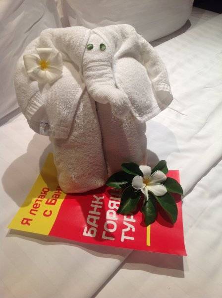 Третья поездка на Пхукет состоялась с 9 марта по 23 марта. Внучка Виктория (15лет). Отель PIRAYA RESORT & SPA ON MAI KHAO BEACH 4* с тремя бассейнами и джакузи. Персонал очень приветливый, уборка в номере на высшем уровне за 5-6 минут группа из 4 тайцев доведет номер до блеска и оставит на кровати вот такого очаровательного слоника.