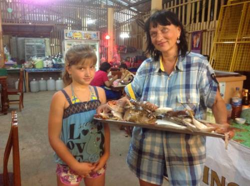 Отсутствие инфраструктуры вокруг отеля, пожалуй, может быть как плюсом, так и минусом. Ужинали в одном месте. Замечательные морепродукты на гриле и исключительные фреши. Подкупала искренность хозяина. Виктории подарили букетик орхидей, ну а мне в последний вечер – замечательный сувенир. Фрукты Тайланда это что –то. Конечно, были и экскурсии и шопинг. Отдых удался.