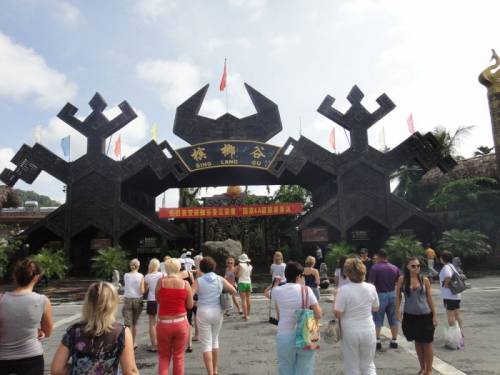 Сценки из жизни деревни довольно забавные. В парке очень много туристических групп(много китайцев), парк и сам огромный и если гид говорит держаться всем вместе, то так и надо, иначе случится то, что случилось со мной и моими подругами. Уверенные в том, что язык до Киева доведёт, и ничего страшного не может произойти, мы отошли от нашей группы и через минуту оказались одни среди тропиков, китайских туристов и их гидов)))английский и тем более русский никто не знает, около 2х часов бегали, тщетно спрашивали, жестикулировали, смешно конечно, но лучше без этого, непонимающие глаза китайцев в итоге достали, у кого-то из нас вырвалось волшебное слово «Пегас», написали его на листке и только тогда у одного их охранников парка в глазах мелькнула догадка. Нас спасли, вернули группе… Да кстати, заявленный и входящий в стоимость билета полёт над джунглями на тарзанке! К Сожалению очень быстро, нет времени даже испугаться или осмотреться, просто поток горячего воздуха во время полёта над пропастью и необходимость смотреть прямо. Тебя ведь фотографируют, фото ламинированное стоит около 2 долларов. В общем полноценная экскурсия с бурей эмоций, красивых фото, новых знаний и милых сувениров…