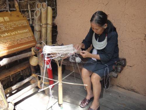 Этнографическая деревня народов Ли и Мяо…от Дадунхая около часа в горы, если на острове ощущение сауны, то там высоко в горах просто парилка)) но очень красиво, тропические деревья (названия подписаны). Показан быт деревни, их ремёсла, жители,постройки. Конечно всё напоказ, для туристов, но расширить кругозор при желании можно. 90-летние бабушки ,аутентичные жительницы деревни, при всех плетут разные изделия из нитей и тут же их продают, их тела полностью покрыты тату, трудно дать им даже 60 лет (хотя ничего удивительного, Хайнань- остров долгожителей) Можно и нужно купить серебро, костяные изделия, засушенные фрукты, горячительные напитки)