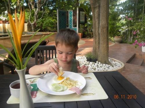 Минусы отеля – достаточно далеко от моря, до городского пляжа на тук-туке минут 10 езды. Мы на городском пляже не купались, плавали на острова. Еще из минусов – маленькая территория вокруг отеля. Отдыхали с двумя детьми, им негде было особо побегать. И бассейн тоже очень небольшой (до этого мы отдыхали в Египте, в Турции, на Хайнане) здесь был бассейн самый маленький. Зато красиво оформлен, с подсветкой, чистый, мне нравилось после целого дня экскурсий, моря и прогулок вечером полежать на лежаке около бассейна, а муж с детьми плюхались там в полном восторге.