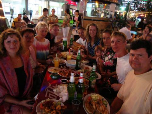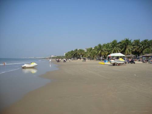 Отдыхали с 19 октября по 02 ноября 2010 года. Погода была замечатльная +25+27. Жары не было, но и замерзнуть не пришлось) В отеле действительно довольно шумно из-за постоянно приезжавших и уезжавших китайцев и стройки. Но для нас это были мелочи, как и уборка, еда и отдаленность от центра. На автобусе №8 за 15 минут и 2 юаня на одного, добирались до Макдональдса, где стоит выйти и пройтись вперед и назад по 1-2 остановки - супермаркетов уйма. Деньги удобнее менять на ресепшне. 200$ в день курс 6,5юаней к 1$. Еда однообразная, но сытная (яичница, жареная картошка, фасоль в томате, рис, сосиски, пончики тыквенные, лапша, ананасы, бананы, соки разбавленные и пр.) На эскскурсии советует ездить самим, посетив от оператора лишь Обзорную. Остальные - просите написать названия на китайском на ресепшне Виктора или Айджан, а потом показать таксисту и ехать по счетчику. Экономия раза в 2-3. Такси лучше ловить подальше от отеля. Нам очень помог русско-китайский разговорник с уже подготовленными фразами по самым разным темам. Но самые главные слова туриста остаются: ниньхао - здравствуйте, сесе - спасибо, до шао цень - сколько это стоит. Торгуйтесь везде, жестами показывайте ниже-ниже и вам сделают скидку. Никогда не проявляйте интереса к покупке. Жемчуг хороший можно купить у Макдональдса правее его, в торговом ряду на улице. Самые лучшие нити китайцы достают из под прилавка. Чем больше покупаешь, тем больше шанс хорошо сторговаться)) Мы купили 3 нитки белого + 2 нитки опалового цвета за 450 юаней. Жемчуг в серебре лучше покупать в магазине. Мы брали в супермаркете "Wang Hao" (там есть магазин Gofon - скидывают от 30% до 50%), находится в 200 метрах по ходу движения от Макдональдса. Там же мы покупали и фрукты и еду. Дешевле, чем на пляже. Хотя как сторгуетесь. Жемчуг там пляже тоже можно брать, но он там низкого качества, на сувенир подружкам пойдет вполне:) Обедать и ужинать лучше в центре, в здании Макдональдса есть заведение "Brazil BBQ", платишь 68 юаней и ешь сколкьо хочешь))) Можно проехать дальше, кондуктору скажете Дадунхай, она подскажет где выйти. Там большая площадь с маленькими кафешками (киосками), которые предлагают разные блюда. Не успеете подойти, как вас окружат толпы китайцев с меню)) Нам понравилась в "русской кухне", просите скидку - сделают. Обязательно попробуйте рыбу на гриле из аквариума - вещь потрясающая:) Имейте в виду, что в Китае все наоборот, чем ближе к центру, тем дешевле. Так что рядом с отелем покупайте только в крайнем случае. Настоящий шелк, без примесей, мы нигде так и не нашли, только на шелковой фабрике. А вот чай, лучше покупать в супермаркете, чайная фабрика всех надуривает раза в 3)) Еще..движение у них бешенное, правила никто не соблюдает, а только скоростной режим. Неправда, что пешеходов не пропускают. Китайцы ездят очень аккуратно, аварий ноль) Просто надо быть понастырнее и переходить дорогу - все остановятся и вас пропустят! Массаж мы делали на пляже у Антона. Сторговались на двоих меня и мужа по 60 юаней за час на каждого. Кожаные изделия найти сложно, но можно, будьте бдительны)) Обувь недорогая. Я купила туфли женские закрытые кожаные за 100ю (500 рублей). Сумку кож. за 200ю.