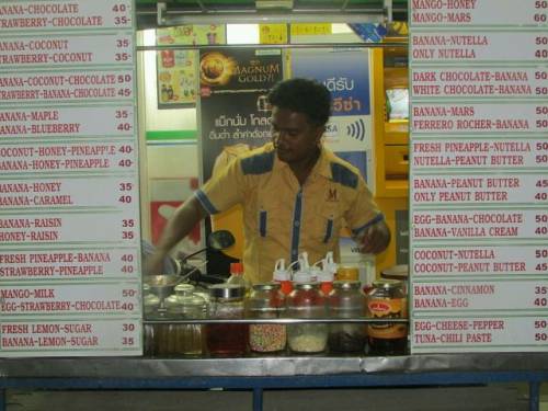 Если есть желание, поужинайте в тайской забегаловке ( у макашников), где они жарят - парят перед вами на улице, очень вкусно! Если вы боитесь отравиться, то поверьте мне, от этого вы не застрахованы даже в самом шикарном ресторане! А тайские блинчики –«пальчики оближешь»!