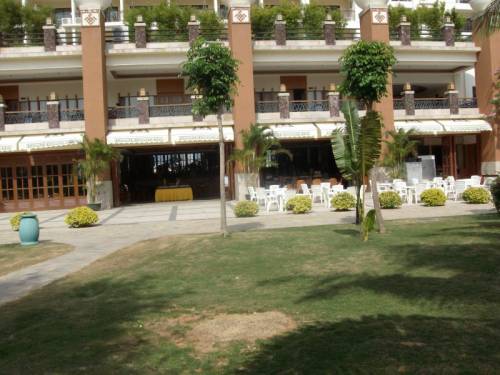 На территории отеля огромный сад и бассейн с голубой водой.