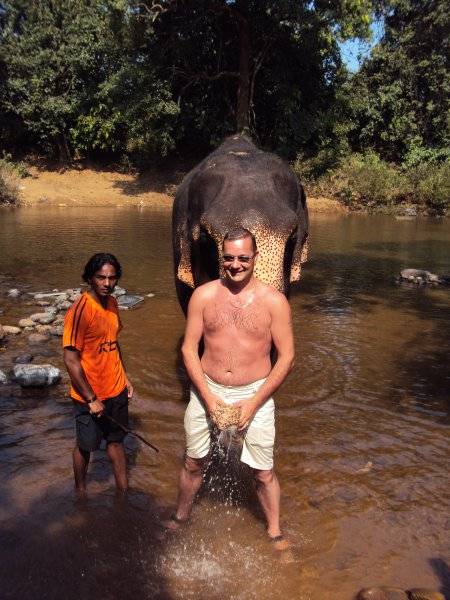 Перед водопадами были на купании слонов. Тебе дают кокос и ты им трешь ушастого, а он тебя поливает из хобота. Был на плантации специй, увидел как растут "приправы".