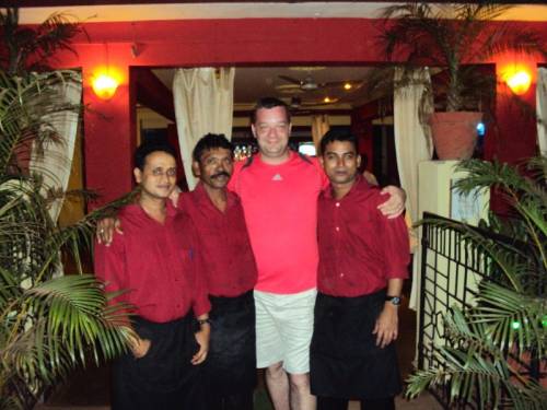 Пляж большой, песчаный, будьте готовы к сюрпризам от отдыхающих на солнце собак и гуляющих священных животных - коров. Надо отдать должное персоналу, лепешки убирают сразу. Из развлечений: парашют, скутер, рыбалка, лодки, массаж. На берегу много шейков, ходили в "Ботел бей", хозяйка, по слухам - русская, персонал владеет нашим могучим в достаточном объеме. Меню в кафе обширное от супов и жаренной свинины и морских гадов. Средний омар стоил 800 рупий. Не дорогое местное спиртное, пробовали "Бакарди" местного разлива и ром "ОЛД монг" 7 или 11 лет выдержки. Цены доступные.