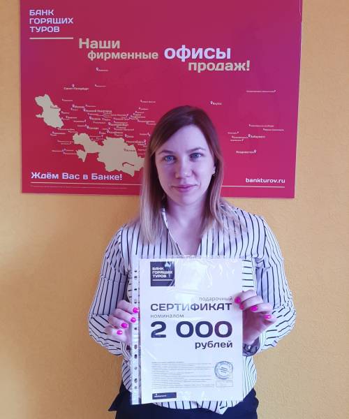 Первый раз обратилась в Банк горящих туров, нашла удобную дату вылета. Понравился сервис в офисе Малореченска. На сайте удобно искать туры. В будущем жду скидок. ...